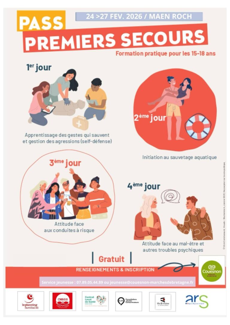 Pour la première fois, le service jeunesse et santé de Couesnon Marches de Bretagne, en partenariat avec plusieurs acteurs locaux, propose un Pass Premiers Secours à destination des jeunes de 15 à 18 ans.